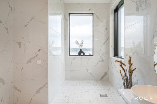 Yläkerrassa sijaitsee ylellinen Master Bedroom, jonka kruunaa merinäköala, tilava vaatehuone sekä oma kylpyhuone kahdella suihkulla ja pesualtaalla. Kylpyhuoneeseen on myös varaus kylpyammeelle. Tästä kerroksesta on käynti suurelle, merelle avautuvalle terassille.