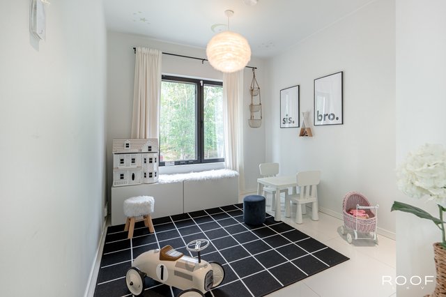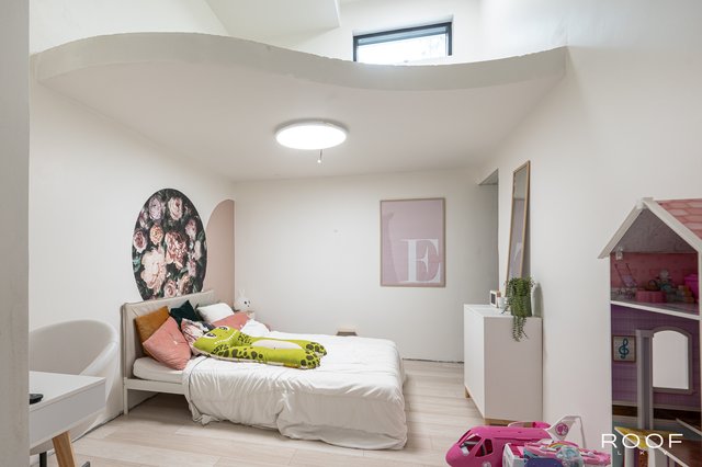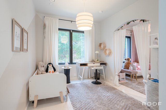Kodissa on neljä pääasiallista makuuhuonetta, joista kolme sijaitsee sisääntulokerroksessa. Kaikki huoneet ovat valoisia ja hyvän kokoisia. Samassa kerroksessa sijaitsevat myös kylpyhuone sekä kodinhoitohuone, josta on toinen sisäänkäynti.