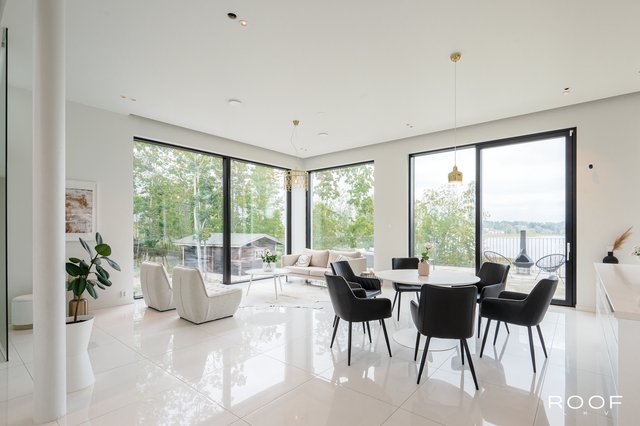 Ainutlaatuisen upea merenrantakiinteistö omalla rannalla ja vesialueella tarjoaa täydellisen yhdistelmän luonnon rauhaa, modernia arkkitehtuuria ja ylellistä asumista. Tämä kolmikerroksinen luksuskoti on suunniteltu huolella omaksi kodiksi – niin toiminnallisuuden kuin laadun näkökulmasta. Suunnittelijana on toiminut arvostettu arkkitehti Anne Fagerholm.