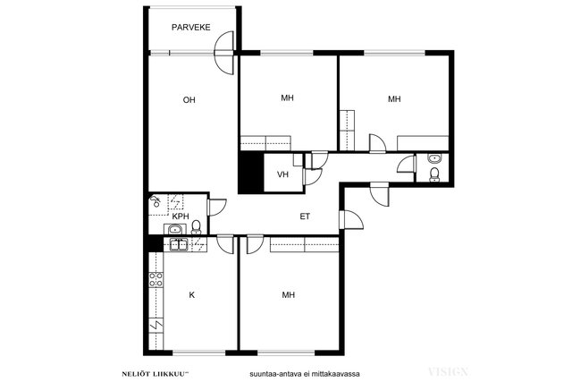 - Yhtiöjärjestyksen mukainen, Isännöitsijäntodistuksen mukainen, (Pinta-ala ei ole tarkistusmitattu ja todellinen pinta-ala voi olla suurempi tai pienempi, kuin ilmoitettu)