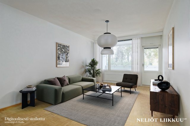 Tämä vuonna 2025 kauttaaltaan uudistettu asunto tarjoaa harmonisen yhdistelmän käytännöllisiä ratkaisuja ja kodikasta tunnelmaa. Tilat on suunniteltu tukemaan arkea, mutta samalla ne kutsuvat myös rentoutumaan ja viihtymään.