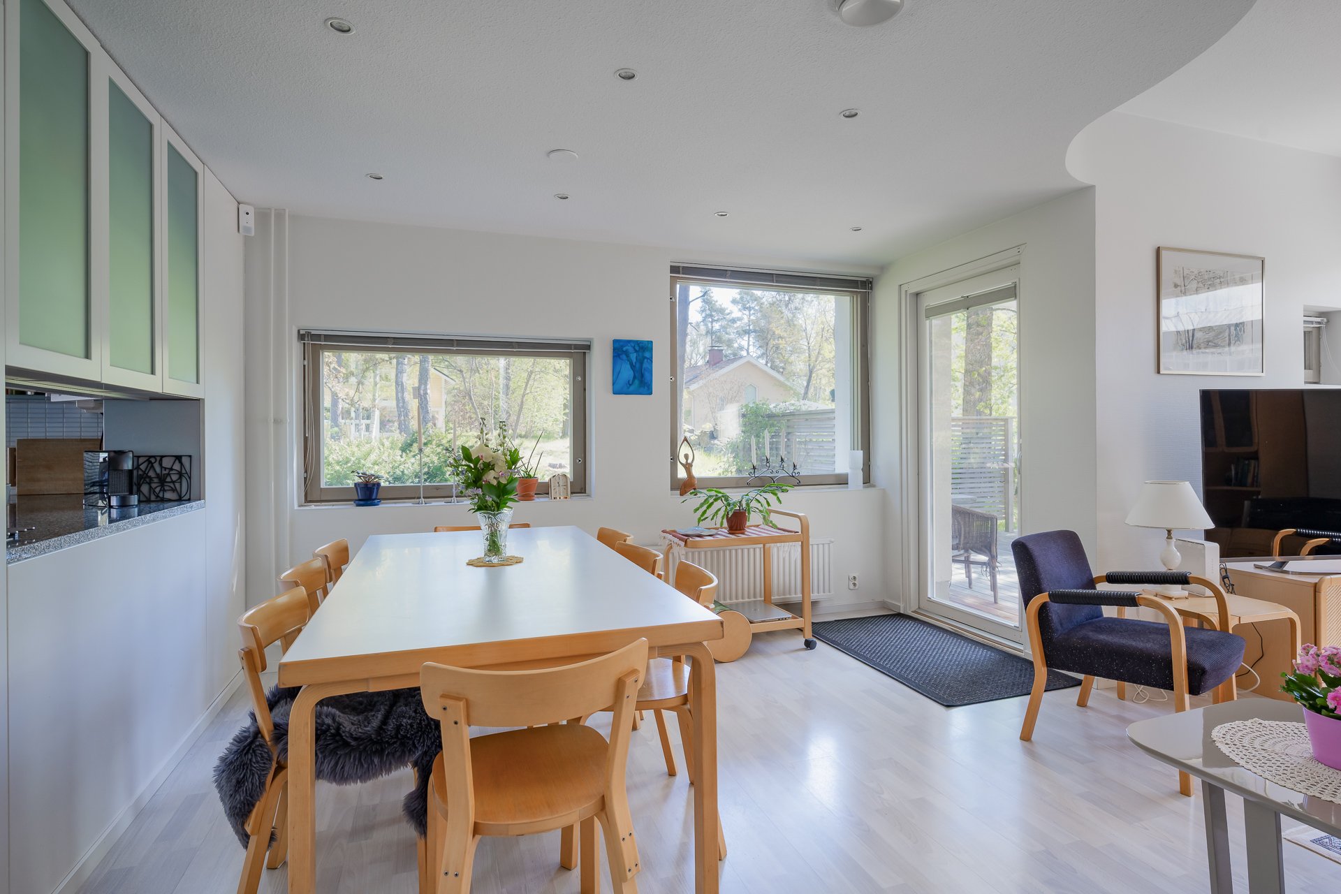 - Mikroaaltouuni (2023 Bosch), astianpesukone (2023 Bosch), liesi (Siemens), jääkaappi (Bosch), liesituuletin (2018), ja uuni