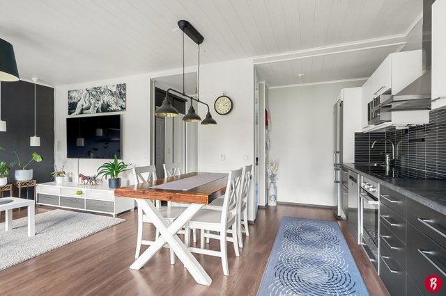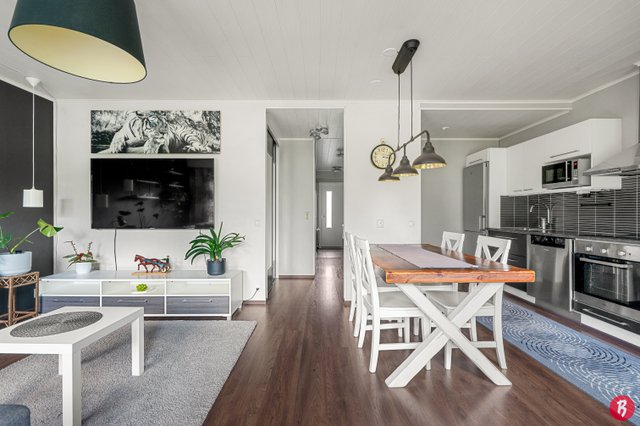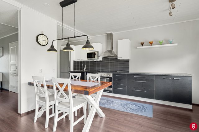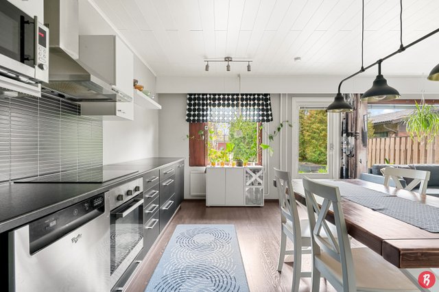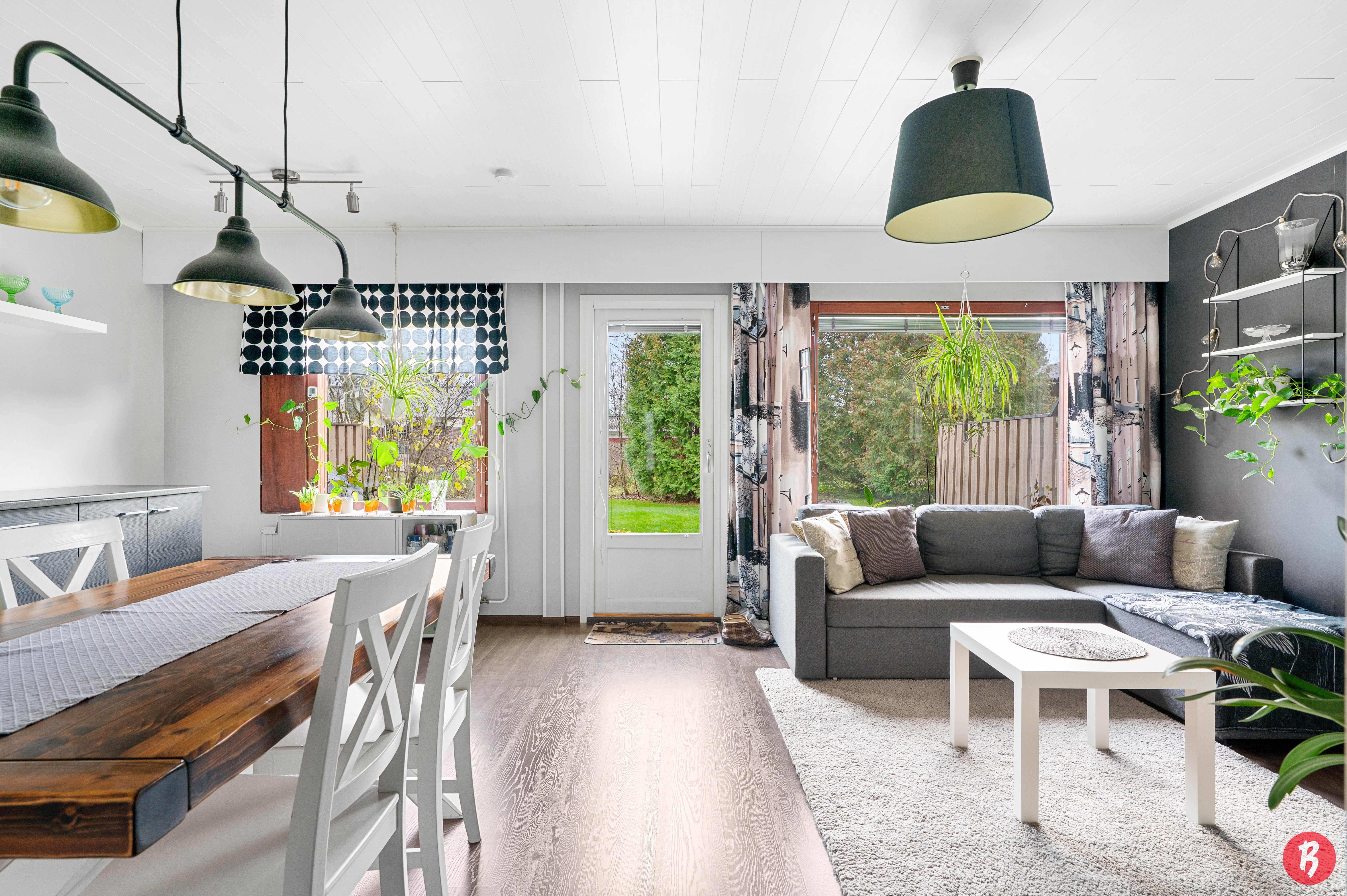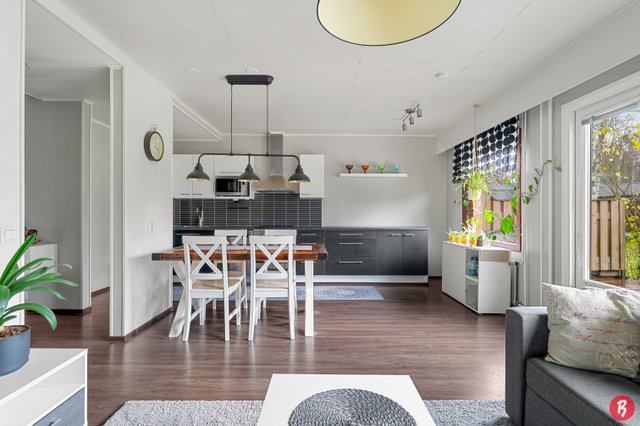Täysin remontoidussa asunnossa on vaivaton kaukolämpö ja reilusti säilytystilaa. Keittiö on käytännöllinen, tyylikäs ja toimiva. Olohuoneen ja keittiön avonainen tila, jonka valaisee isot ikkunat luo miellyttävän tilan seurusteluun ja suojaisalla terassilla voi nauttia auringon lämmöstä. Takapiha on hyvin hoidettu ja siellä on istutuslaatikoita valmiina viljeltäväksi.