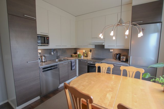 - Jääkaappipakastin, liesi, uuni, liesituuletin (Aktiivihiili), ja astianpesukone