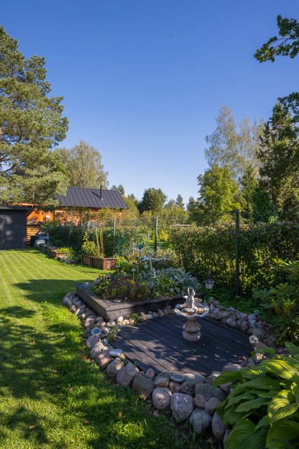 - Suojaisa ja kauttaaltaan aidattu piha. Etupiha on laatoitettu ja pihaa rajaa tyylikäs teräs aita ja portti. Takapiha on pääosin nurmea ja upeat istutukset koristaa pihaa.