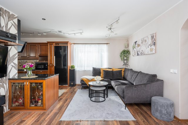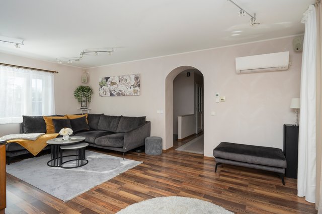 Jo pelkästään viimeistelty etupiha tekee vaikutuksen: tyylikäs teräsaita ja portti tuovat selkeyttä ja turvallisuutta, reilusti parkkitilaa laatoitetulla etupihalla sekä ajoluiska suoraan autotalliin tekevät arjesta mutkatonta. Sisällä odottaa valoisa ja avara olohuone, jonka yhteydessä on laadukas, moderni keittiö – täydellinen paikka yhteisiin hetkiin. Kodissa on kolme tilavaa makuuhuonetta sekä monikäyttöiset varasto- ja harrastetilat, jotka muuntuvat helposti perheen tarpeisiin. Asunto lämpiää maalämmöllä, vesikiertoisella lattialämmityksellä ja lisäksi on ilmalämpöpumppu.