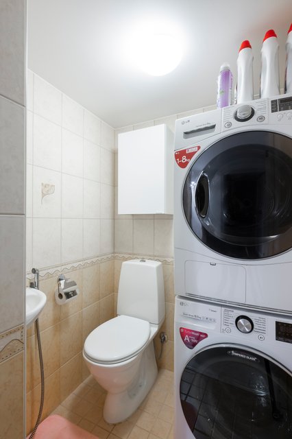 - Alakerrassa on kodinhoitotilaa ja pesukoneliitäntä. LATTIA: laatta SEINÄT: kaakeli