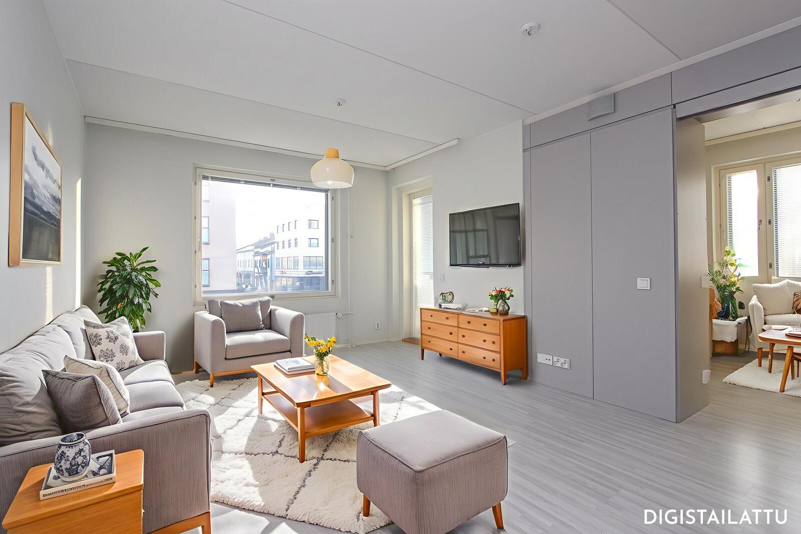 - Valoisa kulmahuoneisto, normaalit kaupunkinäkymät, suht avarat.