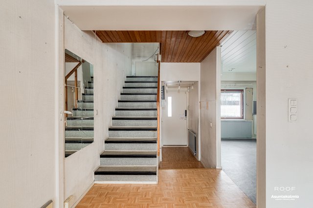 - Kylmä varastotila sisäänkäynnin vieressä. Portaiden alla komero.