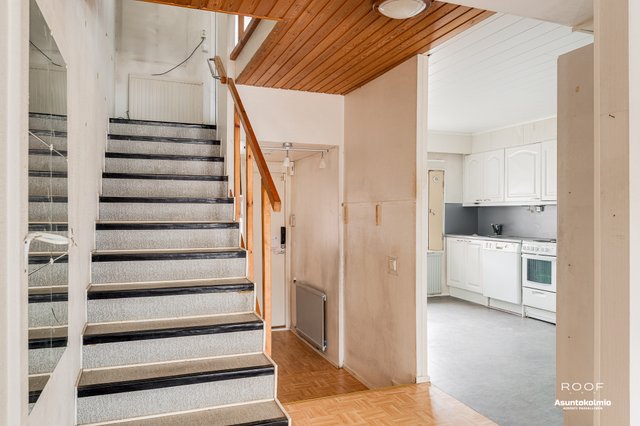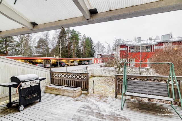 Kyseessä on päätyasunto, jonka pohjaratkaisu on loistava. Alakerrassa on avarat oleskelutilat, ja kaksi makuuhuonetta kylpyhuoneineen on sijoitettu yläkertaan. Asumismukavuutta lisää yläkerran parveke sekä katettu terassi takapihan puolella ja lisäksi suojaisa piha-alue. Asunnon keittiötä on remontoitu v. 2010 paikkeilla, mutta muuten pinnat ovat pitkälti alkuperäiset. Remonttitaitoisena saat tästä edullisesti hankittua loistavan kodin jossa perusasiat ovat kunnossa, ja remontilla saat tehtyä siitä juuri mieleisen. Asunnon käytössä on yksi autokatospaikka joka siirtyy sinulle kauppojen myötä.