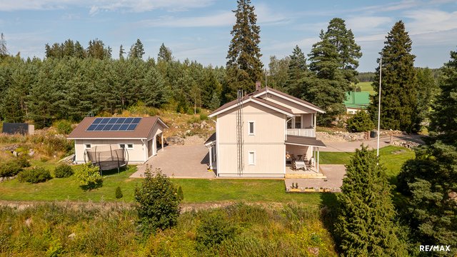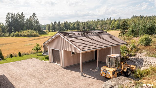 - 42 m2 erillinen autotalli, jossa varasto ( rakennettu 2003 ), katolla aurinkopaneelit. Autotallin yhteydessä autokatos.