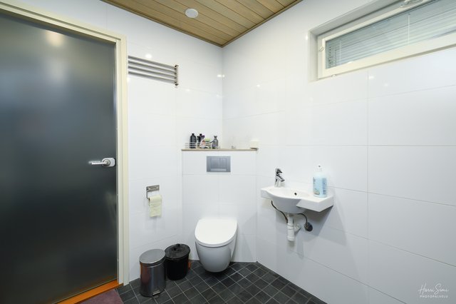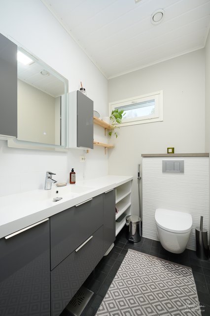 - Erillisessä wc:ssä runsaasti kaapistoja ja seinä-wc. Pesuhuoneessa myös wc-istuin.
