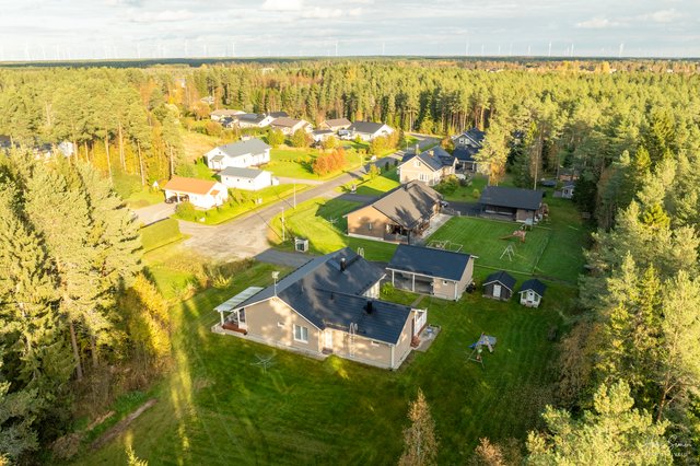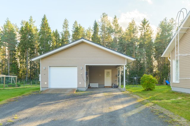 - Ulkorakennuksessa on autotalli (32m²), autokatos ja varasto (9,3m²). Autotallissa on lattialämmitys maalämmöllä, koneellinen poisto ja nosto-ovi. Autotallissa vesipiste. Varastotilassa on myös lattialämmitys maalämmöllä.