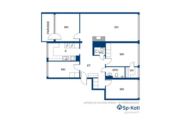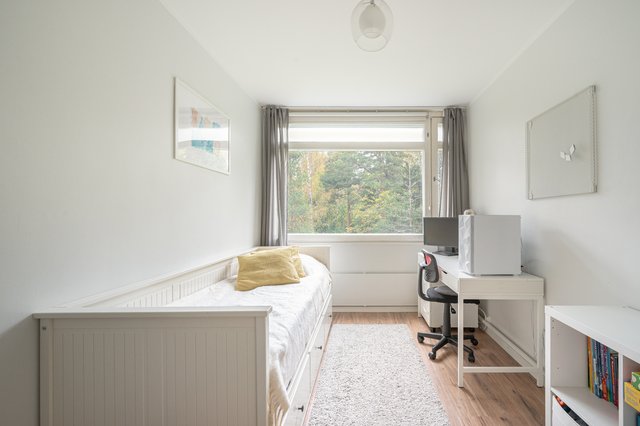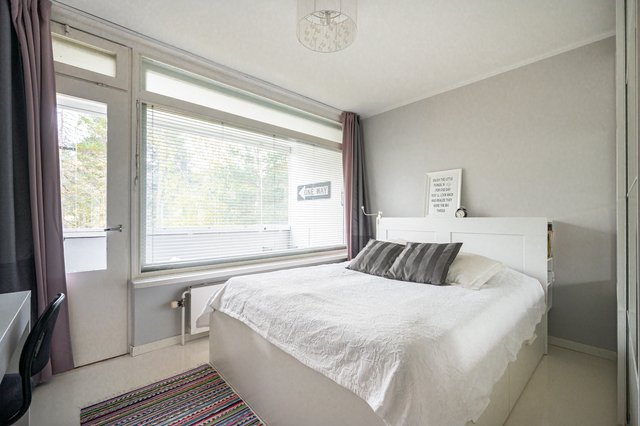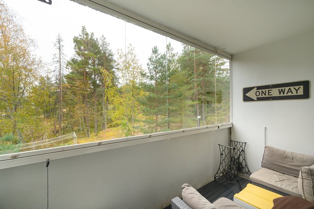 Heti eteiseen astuessa, asunnon väljyys ja ilmavuus kiinnittää huomion ja asunto tuntuukin neliöitään isommalta. Asunnossa on neljä makuuhuonetta, erillinen keittiö ja avara olohuone, josta avautuvat kauniit metsämaisemat. Erilliset wc ja kylpyhuone, jossa toinen wc, tekevät pohjaratkaisun toimivaksi isollekin perheelle. Keittiö on remontoitu ajattoman moderniksi vuosina 20-21 ja laadukkaat kodinkoneet sekä kaunis kvartsitaso hemmottelee vaativaakin ruoan laittajaa.