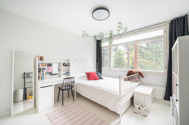 - Neljä tilavaa makuuhuonetta. Yhdessä laminaattilattia, muissa maalattu parketti. Seinät maalattu.