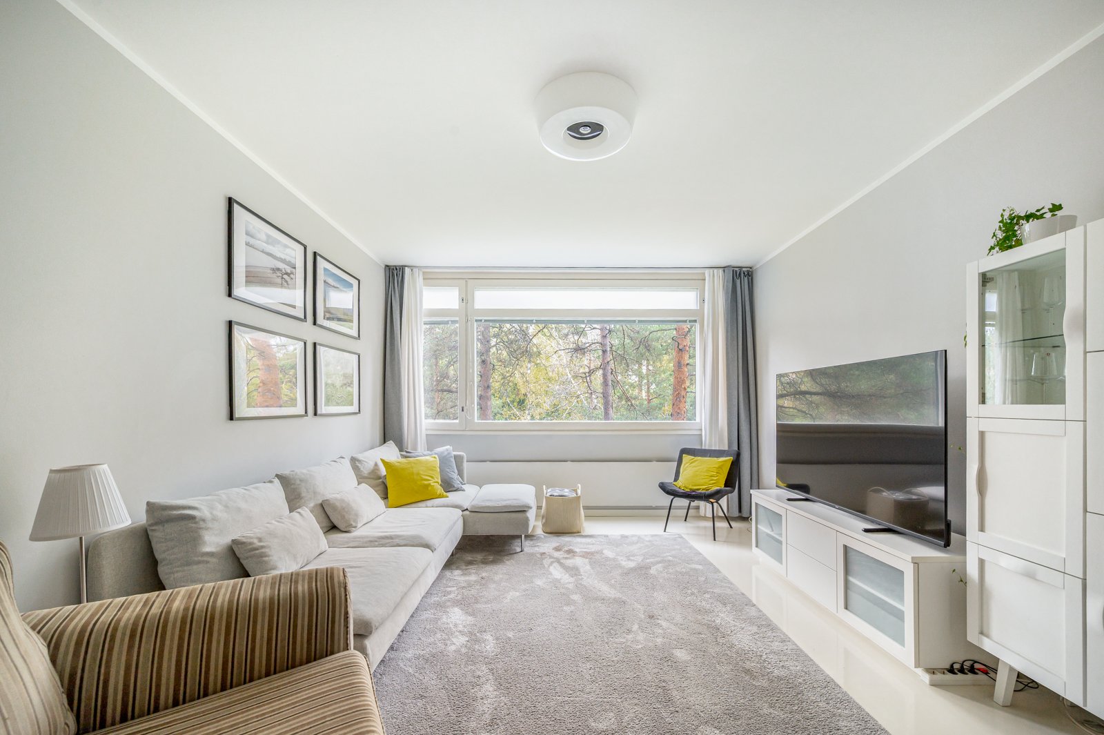 - Avara olohuone, jossa ikkunat seinän leveydeltä. Vastassa kaunis metsämaisema. Seinät maalattu. Valkoiseksi maalattu parkettilattia (2020). Olohuoneessa on avotakka, jonka käyttö kynttilätakkana (isännöitsijältä saadun tiedon mukaan ei voi käyttää tulipesänä eikä hormeja enää nuohota).