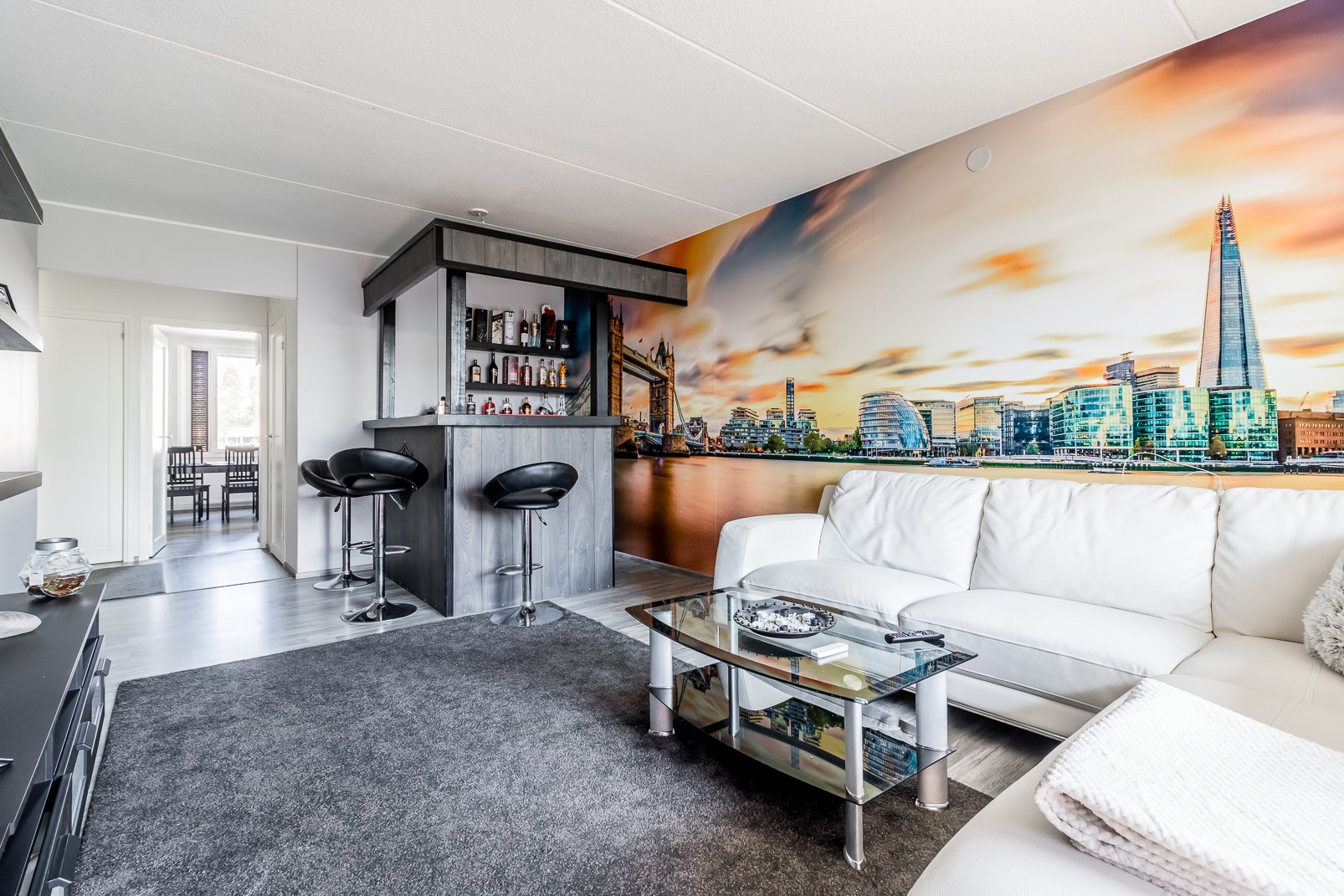 - Erittäin suuri ja valoisa olohuone. Lattia: laminaatti. Seinät: maalattu.