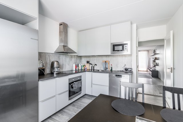 - Tyylikäs v. 2019 keittiö kodinkoneineen. Varustus: jääkaappi, pakastin, liesituuletin, mikroaaltouuni, astianpesukone. Liesi: keraaminen. Työtasot: laminaatti. Lattia: laminaatti. Seinät: maalattu.