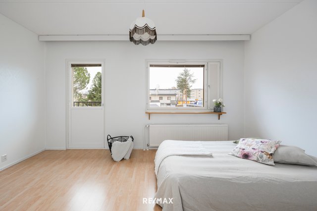 - Yläkertaan sijoittuvat makuuhuoneet ovat molemat todella tilavia, toisessa ranskalainen parveke. Molemmissa makuuhuoneissa on tilavat kaapistot. LATTIA: laminaatti SEINÄ: maali