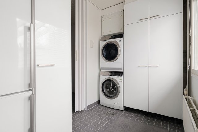 - Pesukoneliitäntä, lattialämmitys (Sähköinen), ja pyykkikaapit