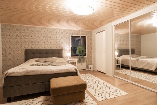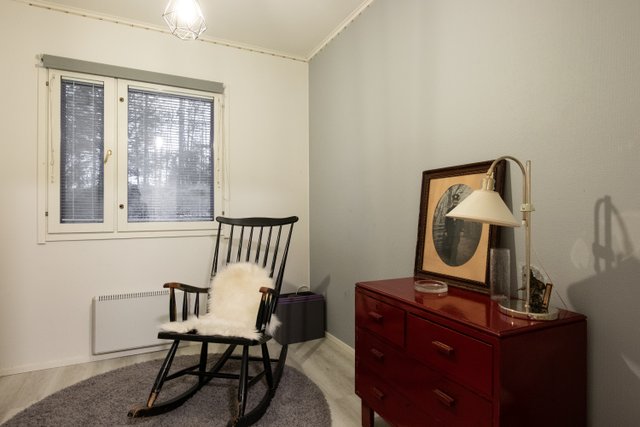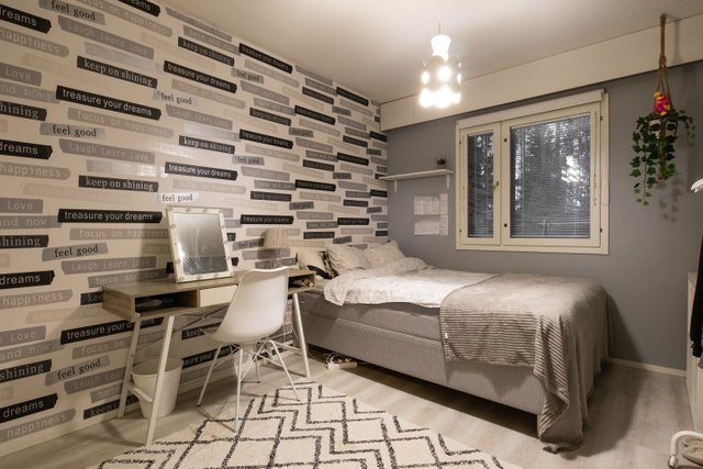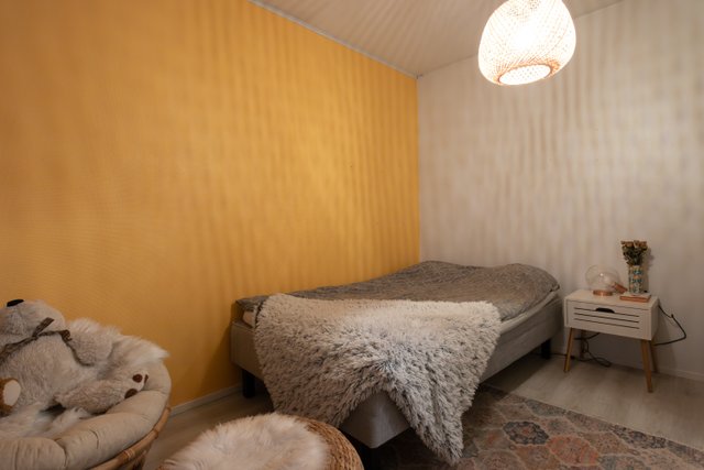 - Makuuhuoneiden seinissä maalia sekä tapettia