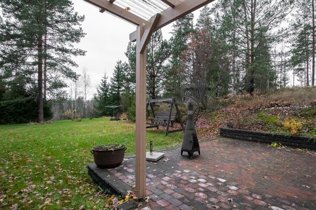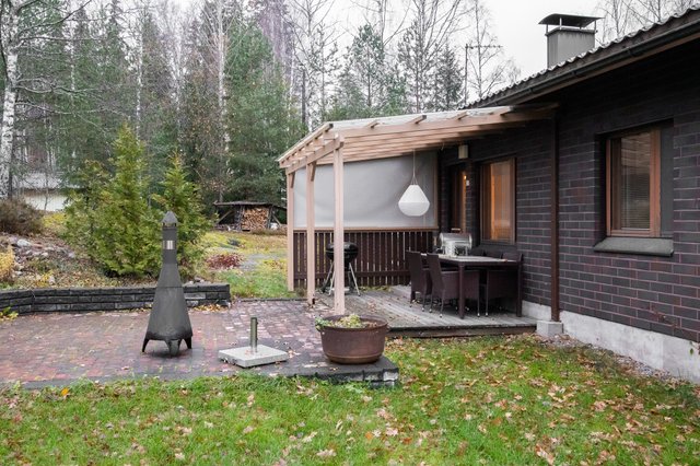Vehreä, lähes 3000 m²:n oma tontti tarjoaa runsaasti tilaa oleskeluun ja pihapuuhille. Takapihalta löytyy suojaisa terassi sekä lasitettu grillikatos. Kiinteistöllä on myös autotalli, sekä varastotilaa.