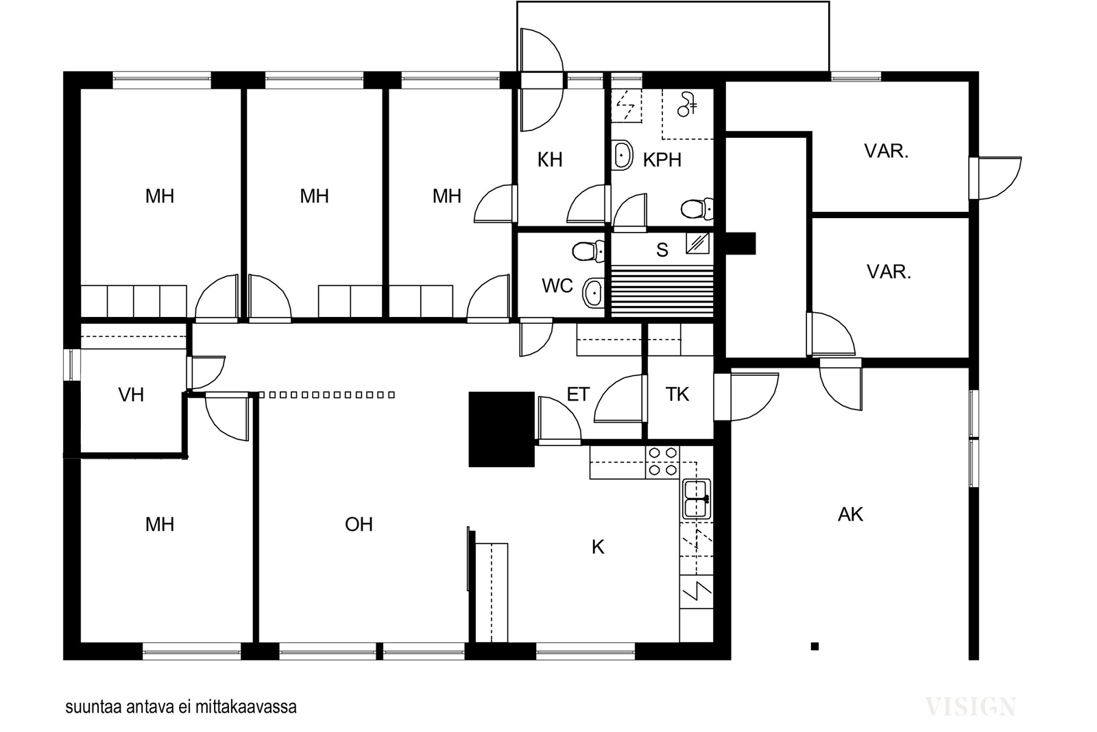 Yhteen tasoon rakennettu, neljällä makuuhuoneella varustettu koti. Erillinen keittiö, jossa reilusti kaappi- ja laskutilaa. Kodinhoitohuone, erillinen wc ja vaatehuone tekevät arjesta sujuvaa suuremmankin perheen kanssa.