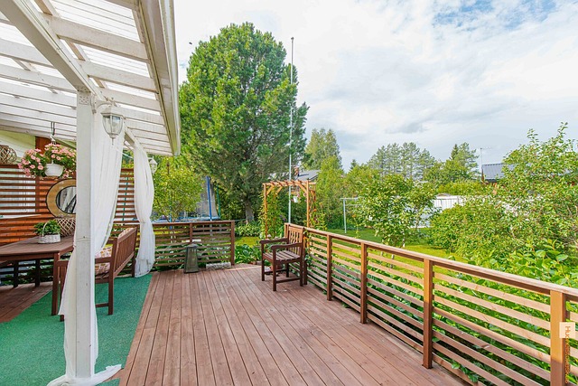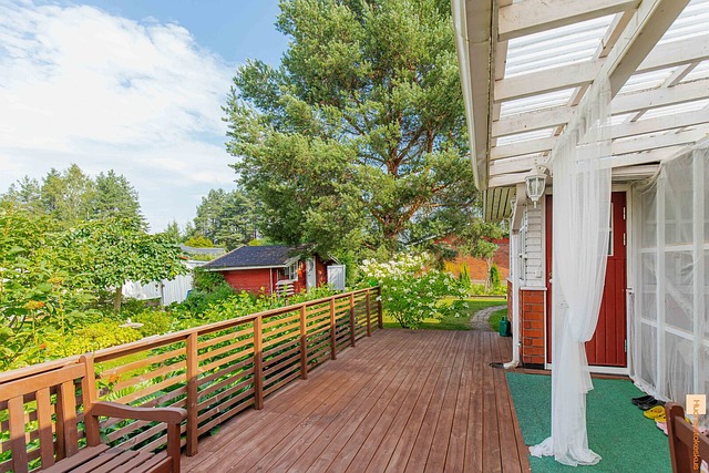 Suojaisa, eteläsuuntainen takapiha ja katettu terassi houkuttavat viihtymään kesällä. Vehreässä puutarhassa mm. omenapuita ja kirsikkapuita sekä laaja kirjo muita istutuksia. Takapihalle on sijoitettu ulkovaja, tämän lisäksi kaksi varastoa autokatoksen yhteydessä.