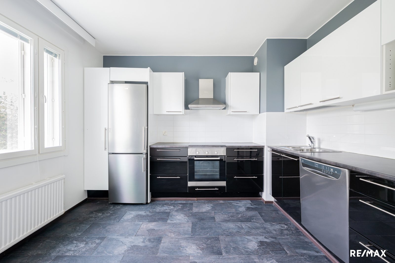Huoneiston keittiö on remontoitu ja varusteltu nykyaikaisilla kodinkoneilla. Tilava makuuhuone ja vaatehuone tarjoavat runsaasti säilytystilaa.