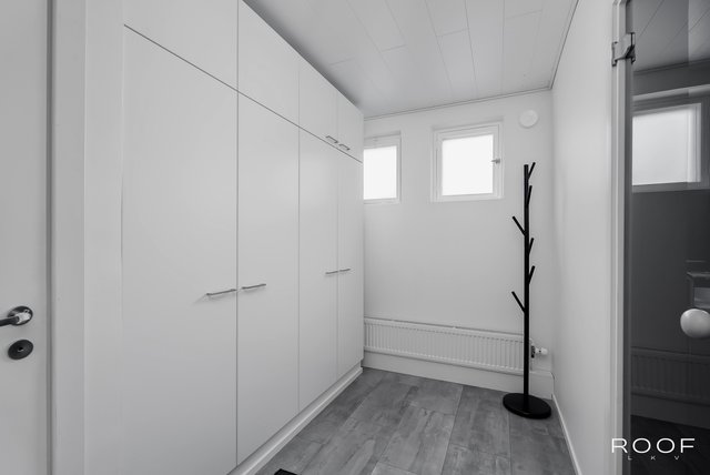 Tässä kodissa on kaksi tilavaa makuuhuonetta, runsaalla kaappi- ja laskutilalla varustettu keittiö, sekä suuri olohuone, josta on käynti katetulle terassille. Talon toisesta päädystä löytyvät pesu- ja kodinhoitotilat, sekä sauna. Asunnossa on kaksi wc:tä.