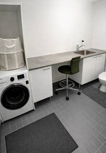 - Varustus: Pesukoneliitäntä Wc-istuin, allas, kaapistot