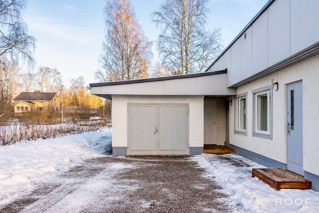 Talo sijaitsee omalla 910m2:n suuruisella tontilla, jossa talon jatkeena on lämmin autotalli.