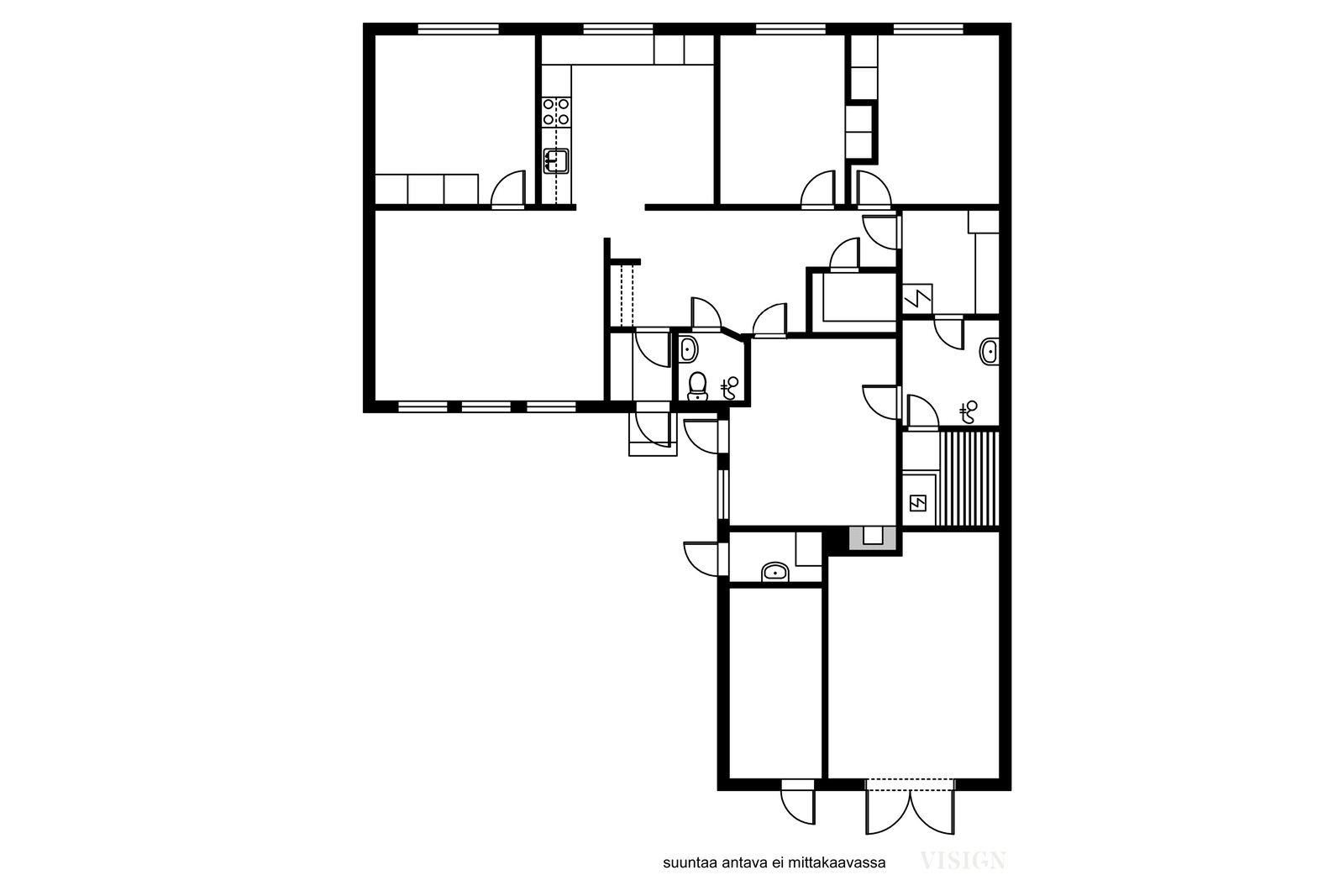 - Ilmoitettu pinta-ala perustuu rakennuslupapiirustuksiin eikä sitä ole tarkistusmitattu. Rakennusvalvontaviranomaisen rekisterissä on kerrosalaksi kirjattu 171 m² ja huoneistoalaksi 118 m².
