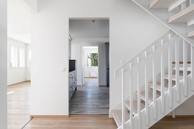 - Tilava eteinen. Takkahuoneesta uloskäynti. Yläkerrassa tilava aula. Vinyylilattiat ja maalatut seinät.