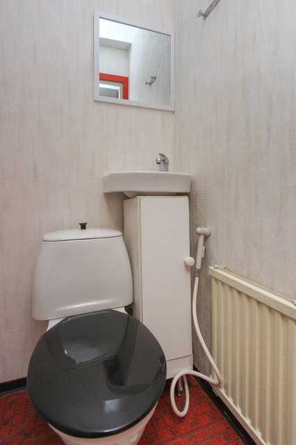 - Yläkerran wc: peili, allaskaappi, korkea kaappi, bideesuihku ja wc-istuin. Lattia ja seinä laatoitettu. Lattia- ja seinäpinnat alkuperäiset, kalusteet on uusittu. Alakerran wc: allas, bideesuihku. Lattia muovimatto, seinät tapetti.