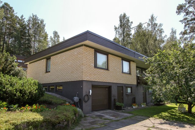 Ryhdikäs 70-luvun omakotitalo rinneratkaisulla Talvisillassa.