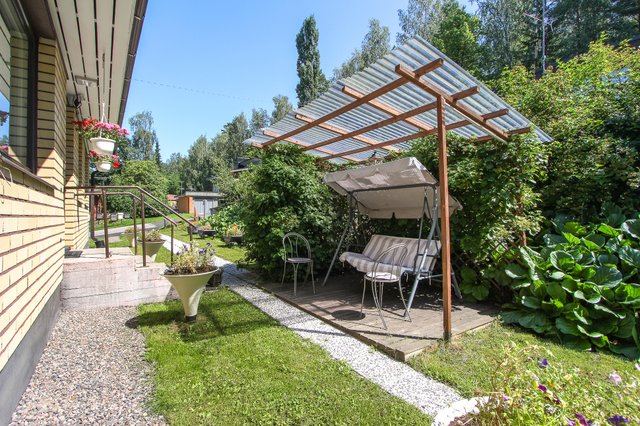 Tämä koti sijaitsee omalla, upealla 936 m²:n rinnetontilla, jossa omenapuita, marjapensaita, koriste- ja hyötykasveja, grillikatos, varasto sekä katos puille.