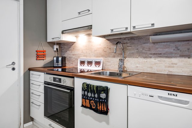 - Jääkaappipakastin, erillisuuni, liesi, liesituuletin, ja astianpesukone