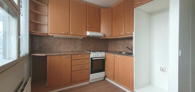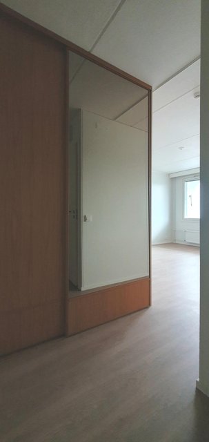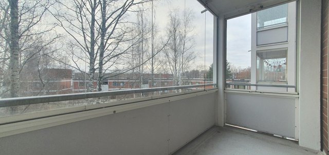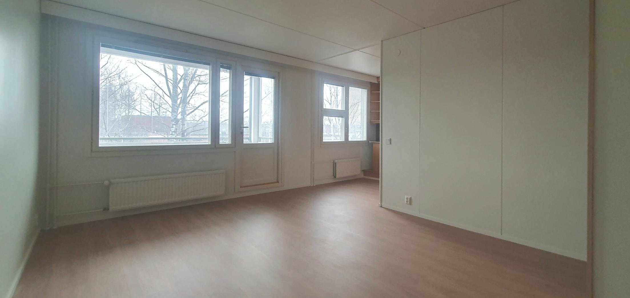 Asunnon olohuone on tilava ja sen yhteydessä on hyvänkokoinen alkovi sekä osittain tilaan avautuva ikkunallinen keittiö. Olohuoneen jatkeena on lasitettu parveke yhtiön takapihalle. Eteisen yhteydessä on kylpyhuone, jossa on tilaa pyykinpesukoneelle, liukuovikaapisto sekä vaatehuone. Asunnon lattiat on uusittu ja seinäpinnat kunnostettu vuonna 2025.