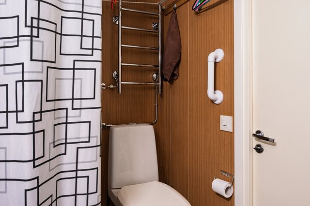 - WC-istuin, suihku, pesukoneliitäntä, peili, ja allaskaappi