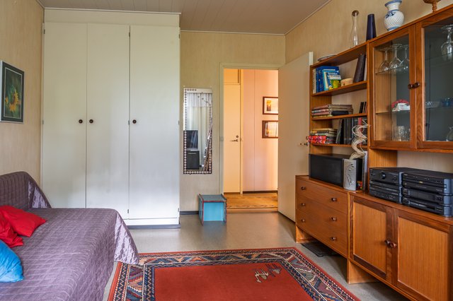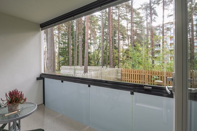 Asunnossa on avara olohuone ja kaksi kivan kokoista makuuhuonetta sekä keittiö, josta löytyy kaikki tarvittava. Kaappi- ja laskutilaa on keittiössä mukavasti ja pöytä mahtuu ikkunan ääreen helposti. Kylpyhuone on siisti ja myös pesukoneelle on kylpyhuoneessa tilaa. Olohuoneesta on kulku huoneiston lasitetulle parvekkeelle. Parveke on maantasalla takapihan puolella, mutta asunto sijaitsee talon toisessa kerroksessa. Huoneiston alapuolella ei asuta.
