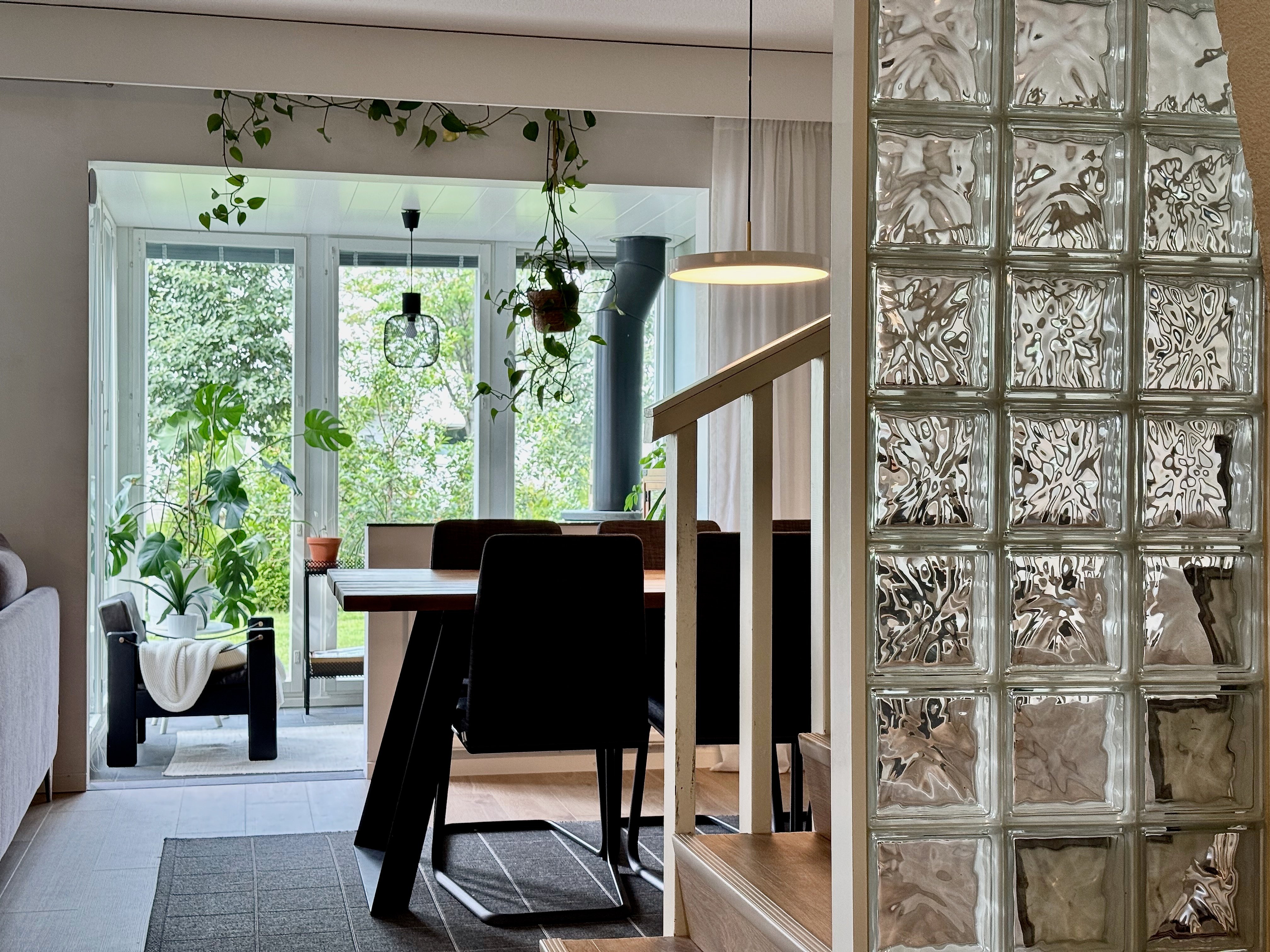- 2025 Olohuoneen lattia uusittu ja seinät maalattu. Lattia materiaali Cello hybrid floor.