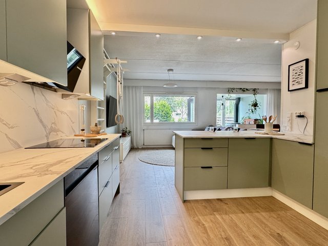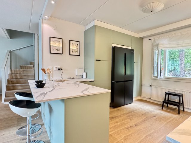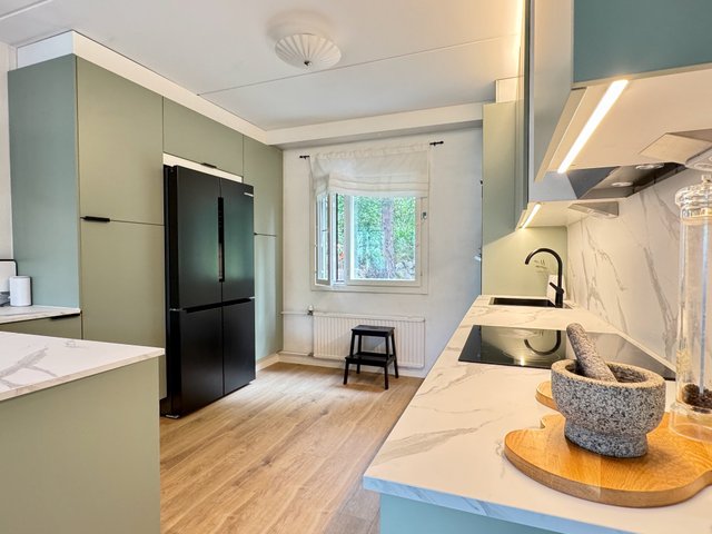 - 2025 Keittiö remontoitu. Uudet ovet ja laminaatti tasot (rungot noin 2010). 2025 Lattia Cello hybrid floor ja seinät maalattu 2025 Keittiön sähkötyöt, led-kotelon rakennus, himmentimen asennus, keittiön välitilan valaistus. 2025 Pesuallas ja hana, astianpesukone, liesituuletin 2024 Jääkaappi ja pakastin 2023 Erillisuuni ja mikro. 2018 Induktioliesi