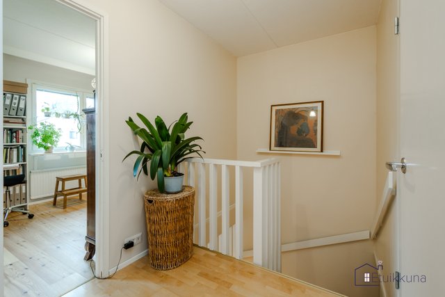 Tämä valoisa ja hyväkuntoinen rivitalon huoneisto sijaitsee rauhallisella ja halutulla alueella Veräjämäessä, Oulunkylässä. Vuonna 1979 valmistunut kaksikerroksinen koti tarjoaa viihtyisän kodin ja elinympäristön. Asunnon olohuone on avara ja valoisa, ja siitä on käynti osittain katetulle terassille. Tilaa on runsaasti, joten halutessasi sisutat sen olohuoneen ja ruokatilan yhteiseen käyttöön.