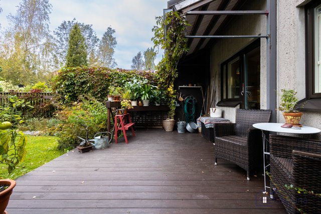 - Osaltaan katetulle terassille mahtuu mukavasti kesäkeittiö ruokaryhmineen. Terassi on lämpökäsiteltyä puuta.