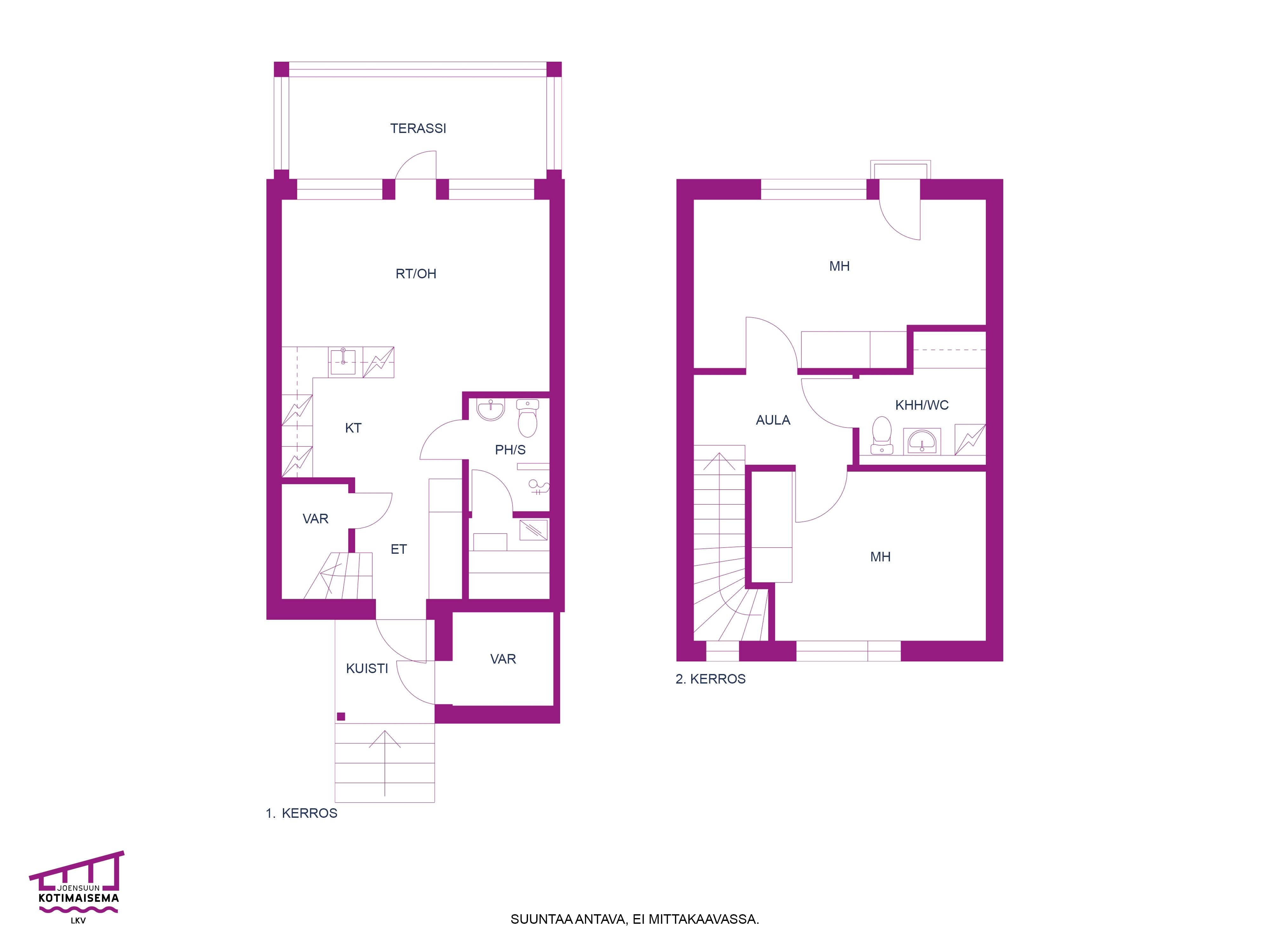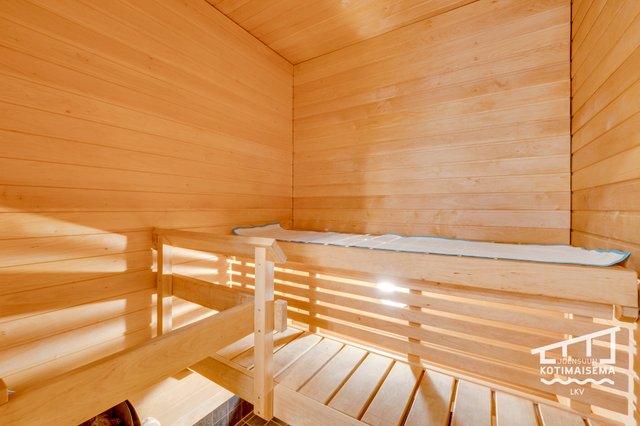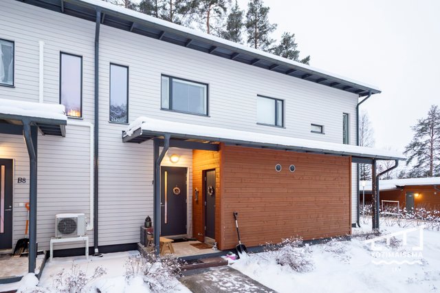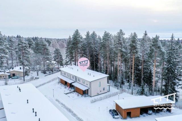 Omalla tontilla olevan 2018 valmistuneen, velattoman taloyhtiön kolmio. Tämän kaksitasoisen kodin alakerrassa saarekkeellinen keittiö ruokailutiloineen yhdistyy saumatta olohuoneeseen. Tila laajenee lasitetulle, päivänpaisteen puoleiselle terassille, jonka katon läpi tulvivaa valoa riittää sisätiloihin saakka. Alakerrassa ovat myös kodin saunatilat, kodinhoitohuone ja toinen wc ovat yläkerrassa, makuuhuoneiden välissä. Suuremmassa makuuhuoneessa on reilusti tilaa myös työpöydälle, ripauksen ylellisyyttä tuo ranskalainen parveke.