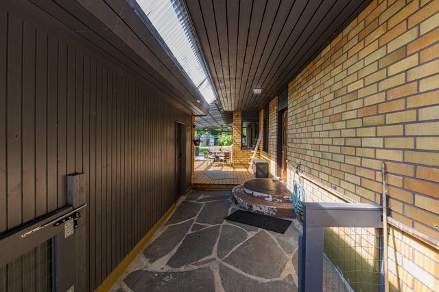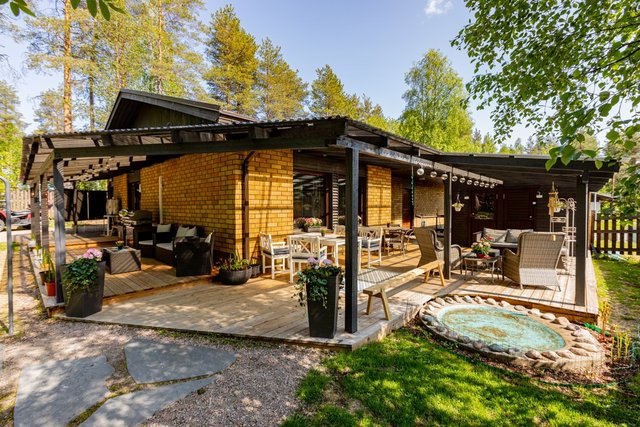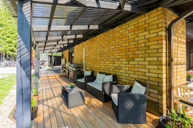Iso aurinkoinen piha-alue tarjoaa tilaa lasten leikeille ja puutarhaharrastuksille. Lisäksi talossa on tilava terassi, joka sopii erinomaisesti kesäpäivien viettoon. Säilytystilat ovat monipuoliset, sillä talossa on sekä vaatehuone että kylmä ulkovarasto.