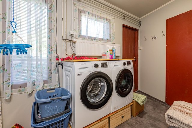- Pesukoneliitäntä ja pyykkikaapit