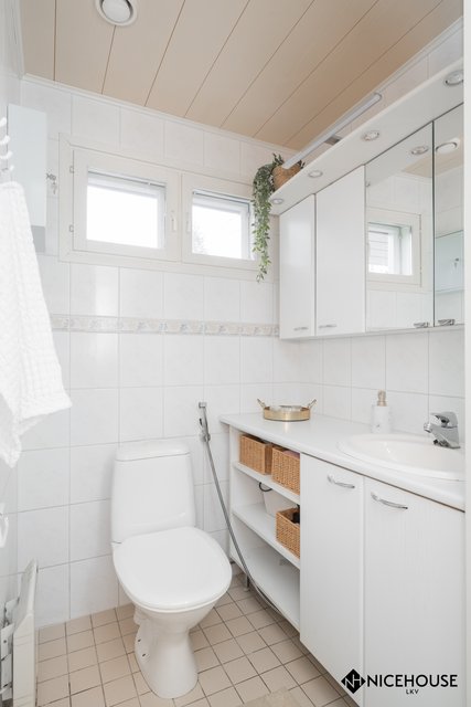 - WC-istuin, suihku (kaksi suihkua), lattialämmitys, peilikaappi, pesuallas, bidee-suihku, ja hana