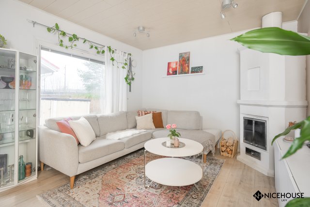 Olohuone, ruokailutila ja avokeittiö muodostavat yhtenäisen tilan oleskelulle. Keittiö yhdistyy ruokailutilaan ja olohuoneeseen luontevasti. Avokeittiö on uusittu tyylikkäin materiaalein vuonna 2015 ja sen yhteyteen mahtuu hyvin suurempikin ruokapöytä. Huoneistossa on harmoniset vaaleasävyiset laminaattilattiat olohuoneessa ja keittiössä, jotka on uusittu v.2025. Olohuoneessa on varaava takka lämmittämässä ja luomassa tunnelmaa. Olohuoneesta on käynti isolle terassialueelle ja siitä edelleen suojaisalle huoneistopihalle. Terassialue pihoineen jatkaa oleskelutiloja pihalle asti keväästä pitkälle syksyyn.